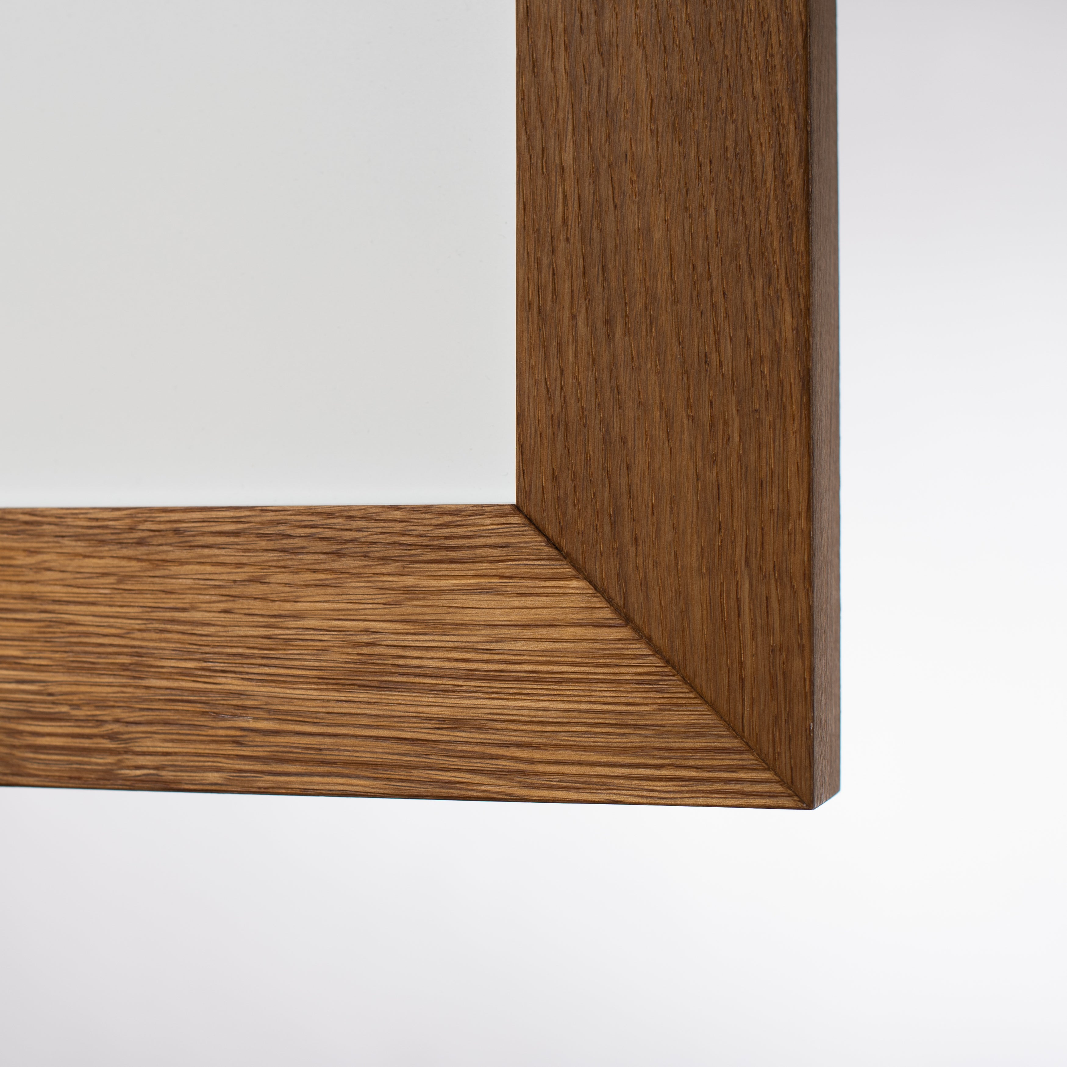 Dieser wunderschöne Eichenrahmen fügt sich durch seine astarme Sortierung in jeden Wohnstil ein. Der Blick wird angenehm durch die wenigen Astlöcher und die typische Maserung gebrochen. Durch die Veredelung mit natürlichem Öl kommt der edle Charakter der Eiche besonders zur Geltung.